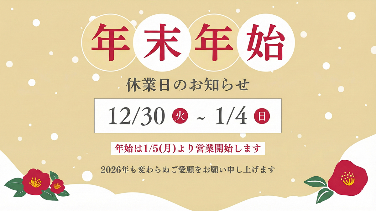 平素より格別のご高配を賜り 厚く御礼申し上げます。 さて、私共ニワホームでは 年末年始につきまして 下記のとおり休業いたします。 【休業期間】 2025年12月… 続きを読む