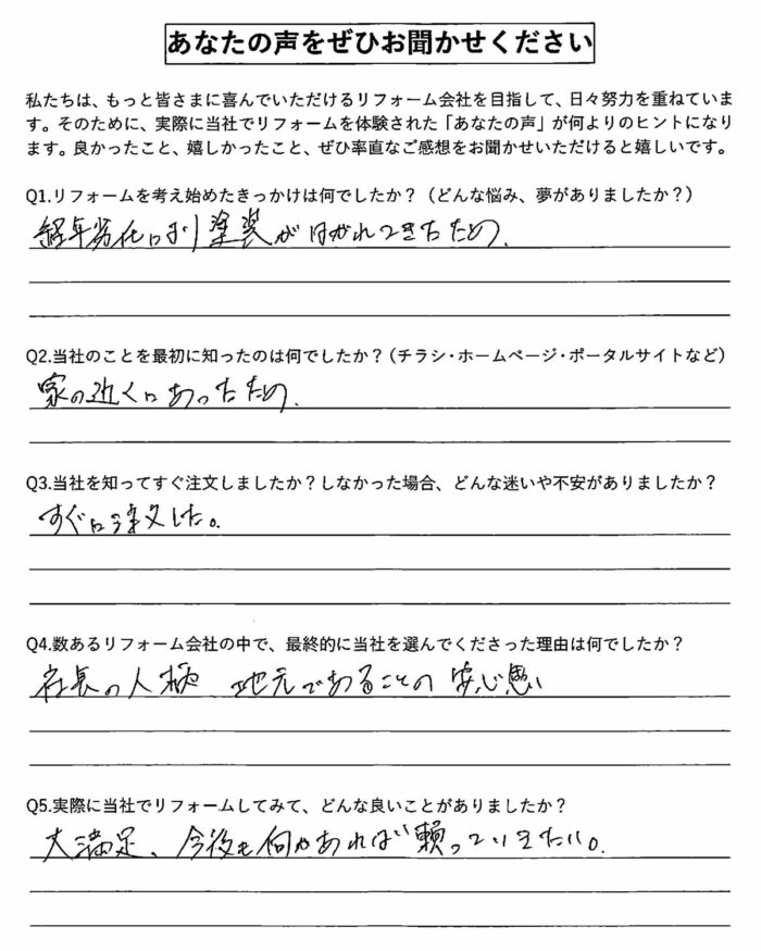 数あるリフォーム会社の中で、最終的に当社を選んでくださった理由は何でしたか?