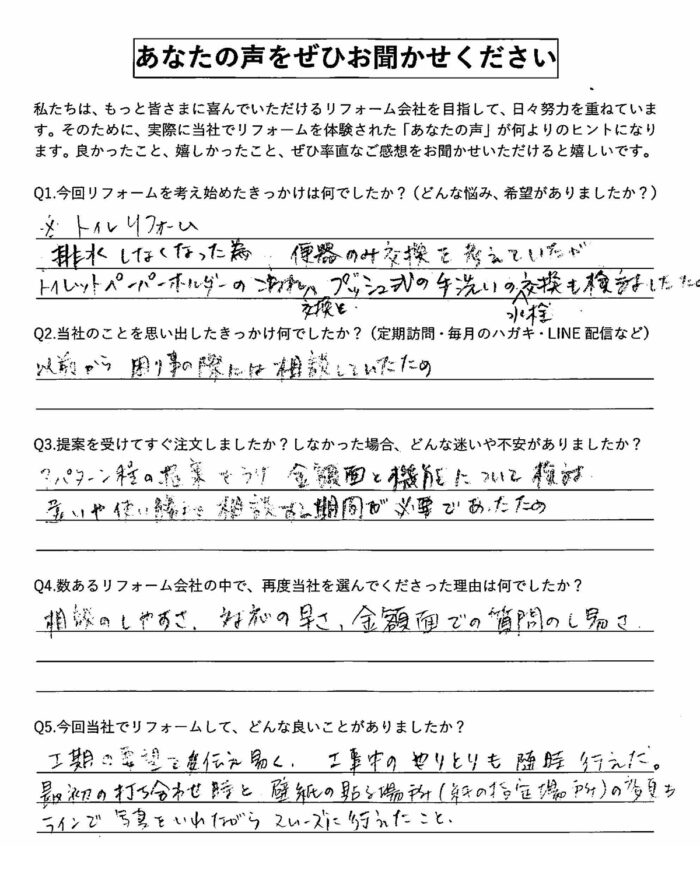 数あるリフォーム会社の中で、再度当社を選んでくださった理由は何でしたか?