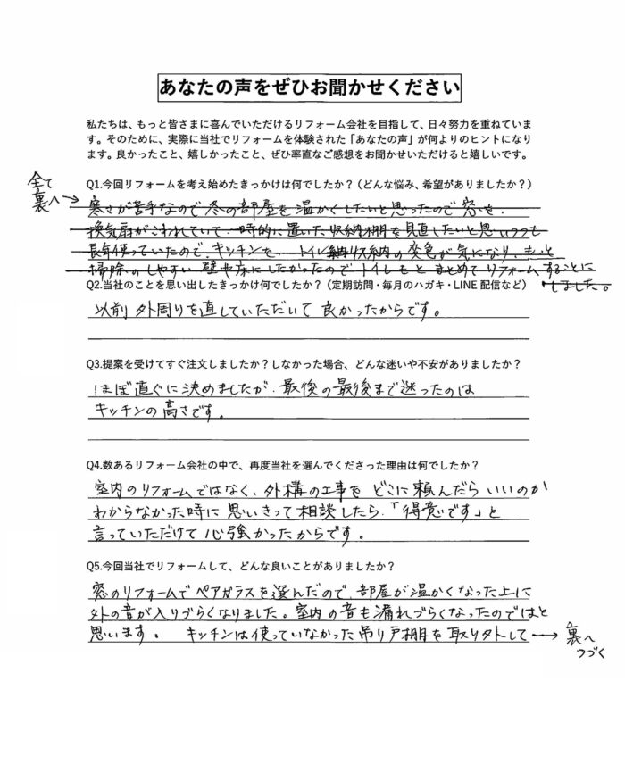 数あるリフォーム会社の中で、再度当社を選んでくださった理由は何でしたか?